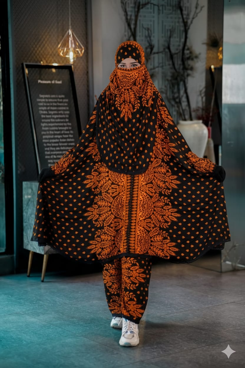 ৫. সব পরিস্থিতিতে উপযোগী: আপনি এটি নামাজের পোশাক হিসেবে ঘরে ব্যবহার করতে পারেন, আবার অফিস, ক্লাস কিংবা সামাজিক দাওয়াতেও অনায়াসেই পরে যেতে পারেন। যারা হজ্জ বা উমরাহ পালনের প্রস্তুতি নিচ্ছেন, তাদের জন্য এটি একটি মাস্ট-হ্যাভ পোশাক।